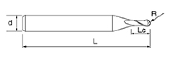 | Ei | Halkaisija D | R-kulma R | Huilun pituus Lc | Kokonaispituus L | Shank Dia d | Terien määrä F |