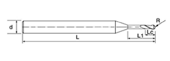 | Ei | Halkaisija D | R-kulma R | Huilun pituus Lc | Tehokas pituus L1 | Kokonaispituus L | Shank Dia d | Terien määrä F |