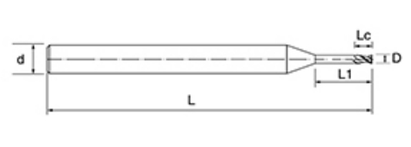 | Ei | Halkaisija D | Huilun pituus Lc | Tehokas pituus L1 | Kokonaispituus L | Shank Dia d | Terien määrä F |