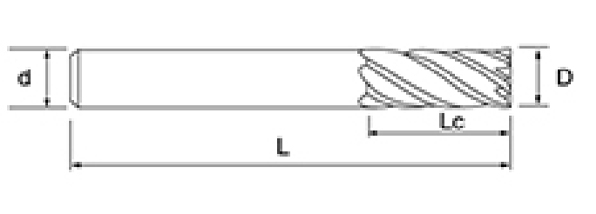 | Ei | Halkaisija D | Huilun pituus Lc | Kokonaispituus L | Shank Dia d | Terien määrä F |
