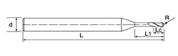 | Ei | Halkaisija D | R-kulma R | Huilun pituus Lc | Tehokas pituus L1 | Kokonaispituus L | Shank Dia d | Terien määrä F |