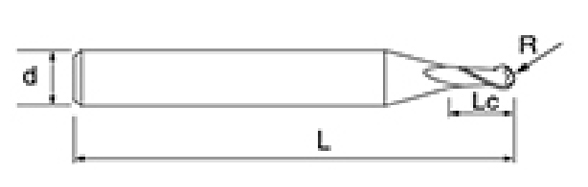 | Ei | Halkaisija D | R-kulma R | Huilun pituus Lc | Kokonaispituus L | Shank Dia d | Terien määrä F |