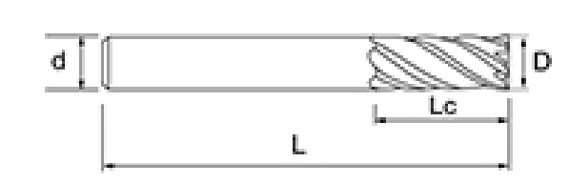 | Ei | Halkaisija D | Huilun pituus Lc | Tehokas pituus L1 | Kokonaispituus L | Shank Dia d | Terien määrä F |
