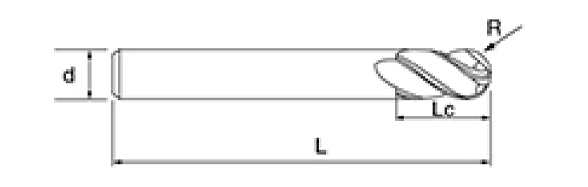| Ei | Halkaisija D | R-kulma R | Huilun pituus Lc | Kokonaispituus L | Shank Dia d | Terien määrä F |
