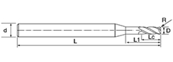 | Ei | Halkaisija D | R-kulma R | Huilun pituus Lc | Tehokas pituus L1 | Kokonaispituus L | Shank Dia d | Terien määrä F |