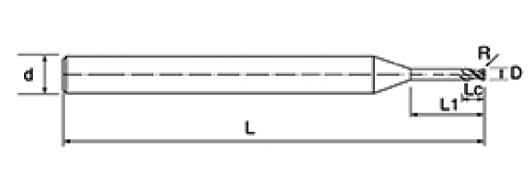 | Ei | Halkaisija D | R-kulma R | Huilun pituus Lc | Tehokas pituus L1 | Kokonaispituus L | Shank Dia d | Terien määrä F |