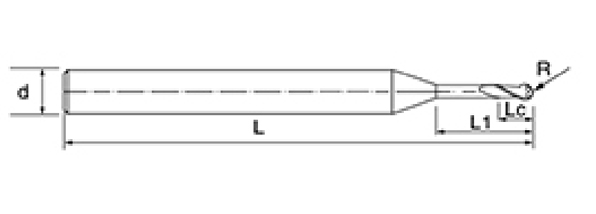 | Ei | Halkaisija D | R-kulma R | Huilun pituus Lc | Tehokas pituus L1 | Kokonaispituus L | Shank Dia d | Terien määrä F |