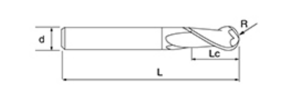 | Ei | Halkaisija D | R-kulma R | Huilun pituus Lc | Kokonaispituus L | Shank Dia d | Terien määrä F |