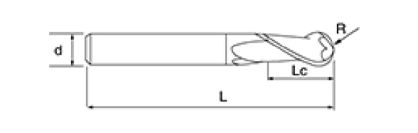 | Ei | Halkaisija D | R-kulma R | Huilun pituus Lc | Kokonaispituus L | Shank Dia d | Terien määrä F |
