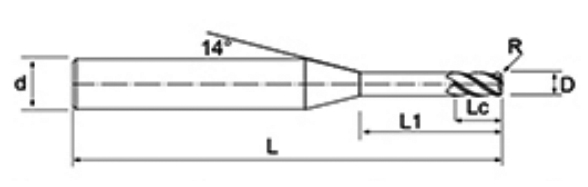 | NNX kovametallipäätyjyrsimet kuparielektrodille | D0,1-D0,9 | 0 -0,005 | R0,05 ~ R2 | /-0,005 | CR0,05-CR0,5 | /-0,005 | 0 0.3 | 0 0.3 | 0.5 -0,5 | h5 |